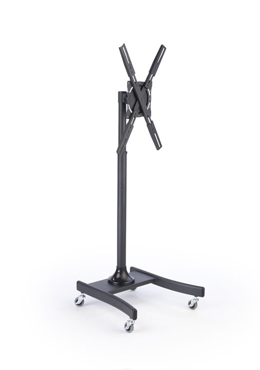 These cost-effective LCD TV stands display (1) flat screen monitor between 32” and 47” that weighs less than 77 pounds. Assembly is quick and once the unit is fully functional, the height of the flat panel plasma display can be easily adjusted to (1) of (7) different levels. Electrical cords are conveniently stored inside the tower of the structure, minimizing the possibility of tangled cables and accidents. These affordable LCD TV stands with wheels have locking casters to help keep the unit stationary when in the locked position. This mobile floor cart weighs 52 lbs., is VESA compatible and can fit any LED monitor measuring 32″ to 47″ that weighs less than 77 lbs. These mobile displays, affordable LCD TV stands enable users to easily mount flat screen televisions, can unscrew and rotate to install a display vertically or horizontally, depending on preference and use. The mounting bracket can tilt 25° down, allowing the plasma monitor to be positioned at the perfect angle. These are affordable LCD TV stands that can be stored against a wall when the unit is not tilted and the bracket is positioned vertical at 0°. The construction of this monitor rack is versatile, blends into any environment and is designed for economy use!