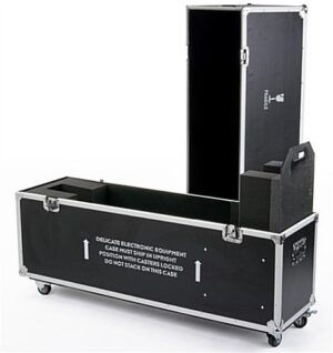 This flat screen tv case for trade shows has two locking caster wheels. The locking mechanisms make it easy to load and unload LCD monitors. This portable 80” monitor container, flat screen tv case that locks has extra space for accessories such as cable cords so that all electronics can be organized into one container for effective use. Every flat screen tv case that protects 73” LCD screens feature secure chrome plated iron latches that keep the cover firmly attached to the case. These road crates are great for transporting valuable LCD electronics. The flat screen tv case, such as a road caddy, is great for tradeshows and exhibits to display important information. Keeping expensive plasma screens damage free during transport, these shipping crates are a great investment!
