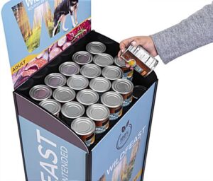 Our spring-loaded custom beverage display stand is the ideal point-of-sale solution for merchandising stackable products in convenience stores, supermarkets, breweries, wineries, or even public events such as trade shows. Whether you need to showcase packs of water, soda, beer, energy drinks, or food cans, this vertical dispensing fixture with innovative self-serve design allows for effortless stocking and restocking of items while withstanding up to 55 pounds of merchandise. The interchangeable full-color personalized graphics on each beverage display stand makes it easy to update marketing campaigns at your convenience. Additionally, this vertical case stacker features grooves along the perimeter of its base to firmly hold the contour cut panels in place. Crafted from heavy-duty steel with a matte black powder-coated finish, each beverage display stand can endure the conditions of a high traffic shopping environment. Change the way you merchandise your best stackable inventory with this spring-loaded dispensing fixture that is sure to raise your product right up into customer’s hands every time!
