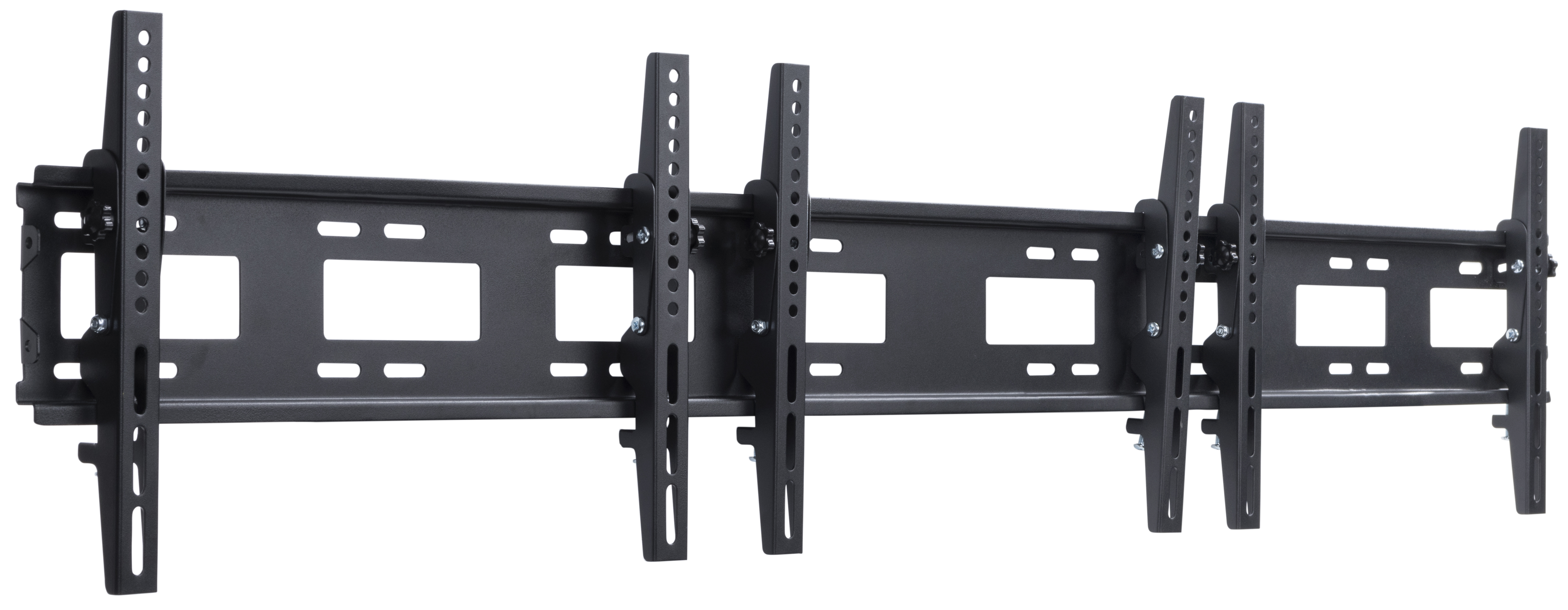 Showcase eye catching advertisements, menu items, and custom screens on this 3-TV tilt mount. Tilting brackets give way to the perfect viewing angles in stores and restaurants, allowing customers to see information from a distance. Able to support three screens, each video wall tilt mount is VESA compatible and can accommodate a maximum combined capacity of 198 lbs. Mounting bracket hardware is included to assist in installing most flat panel televisions. Create a video wall in airports to showcase flight times, restaurants to display menu items, or bars to play the latest sports games. Get a tilt mount for your establishment to create a one-of-a-kind viewing experience.