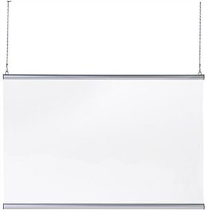 Our clear hanging protective sneeze guard is an easy way to help stop the spread of airborne viruses and maintain social distancing in your business. Unlike rigid acrylic barriers, this counter-height shield set is crafted from 36″ x 24″ flexible PVC vinyl held taut by silver aluminum banner frames. Designed to easily section off work areas with minimal obstruction, this clear hanging protective sneeze guard is ideal for hospitals, pharmacies, corporate offices, grocery stores, checkout counters, reception desks, teller windows, and more. Each vinyl partition can suspend where physical separation is needed using our chain hardware (KITCH60/KITFL60) sold separately. Additionally, as your merchandising needs change, trim this counter-height splash and spray barrier with scissors to customize it to your desired length. Protect your employees and customers from being infected by harmful aerosol-based contaminants with our clear hanging protective sneeze guard today!