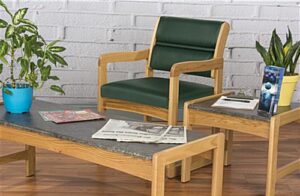 This green reception area chair is the perfect waiting room furniture piece for your hospital lobby space. The unit features a light oak wood construction and a modern design to complement your existing layout. The vinyl reception area chair will give you long lasting use due to the solid wood build and weight support up to 400 pounds. Assembling the furniture seat is a snap, just connect the two cushioned pieces to the wooden arms using the slide-on brackets. The look of this chair will add a great touch to an already modern design. Place these vinyl furniture pieces around your waiting room and provide your clients with a comfortable and relaxing visit!