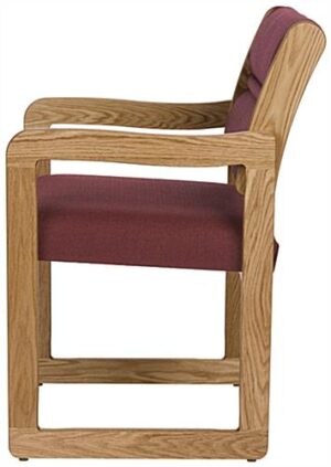Burgundy Lobby Chair with Medium Oak Wood Build
