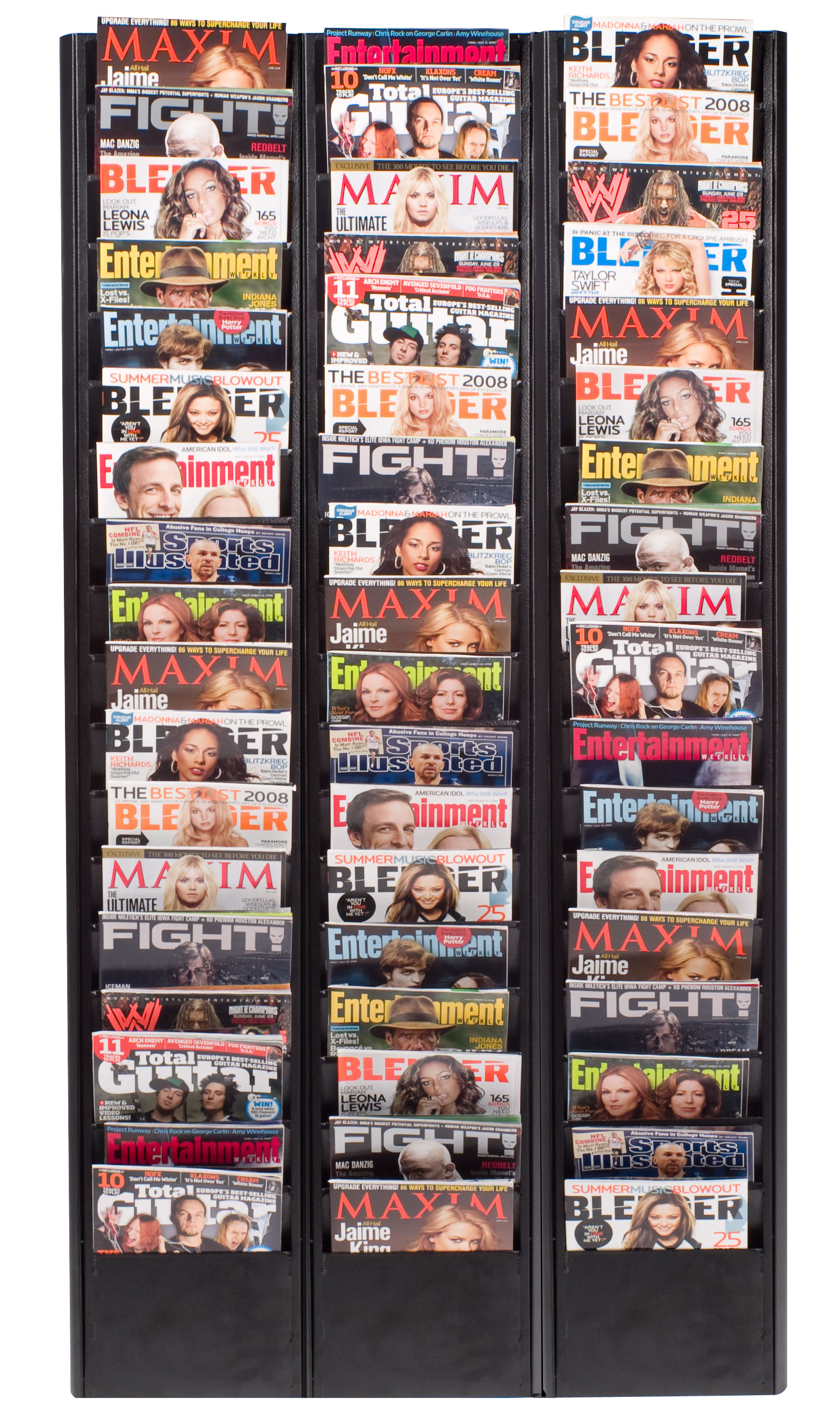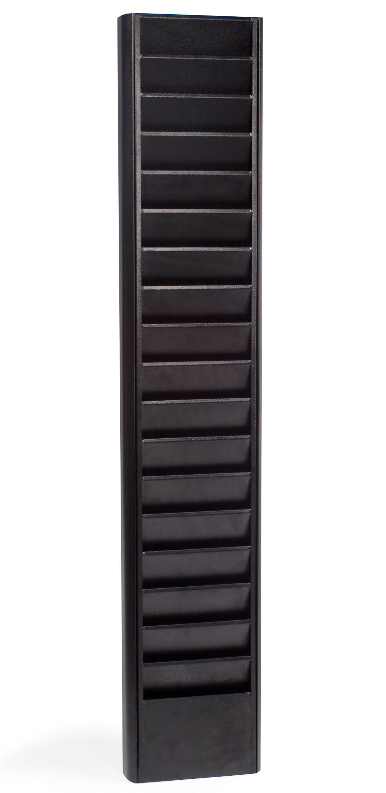 18-Tiered Magazine Wall Rack, 8.5″w, 18 Pockets, Removable Ends – Black