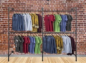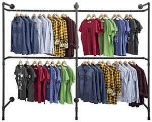 Wall Mounted Dual Pipeline Display, 4 Clothing Hanger Racks – Black