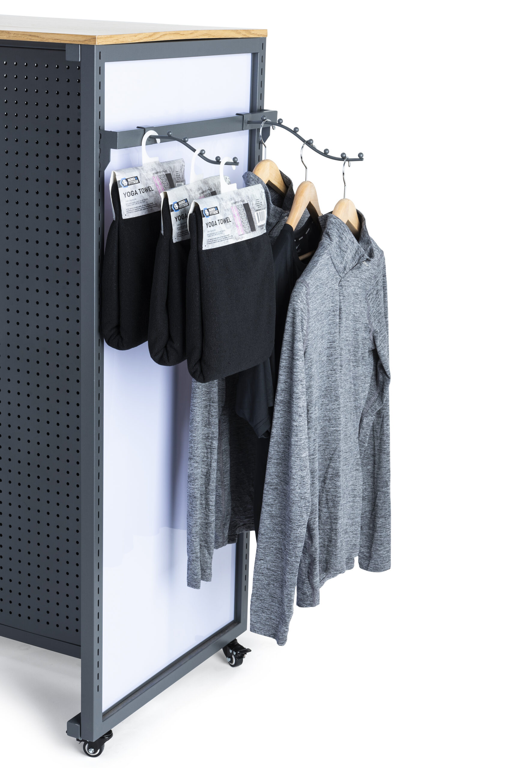 Our waved waterfall hanger set for SM4HBB pairs perfectly with our modular rolling gondola (SKU: SMWMFD), allowing for a wide range of retail display options. The hooks are made of solid powder-coated steel and have a curved design to create a staggered and organized product showcase in your store. They are sold in a set of 16 hooks consisting of (8) 8″ and (8) 12″ long options. Each wavy display hook has an overall weight capacity of 16.5 lbs., allowing you to showcase various products from shirts to dresses. Our waved waterfall hanger set for SM4HBB will provide you with ample exhibiting space for your boutique, department store, or shopping center.