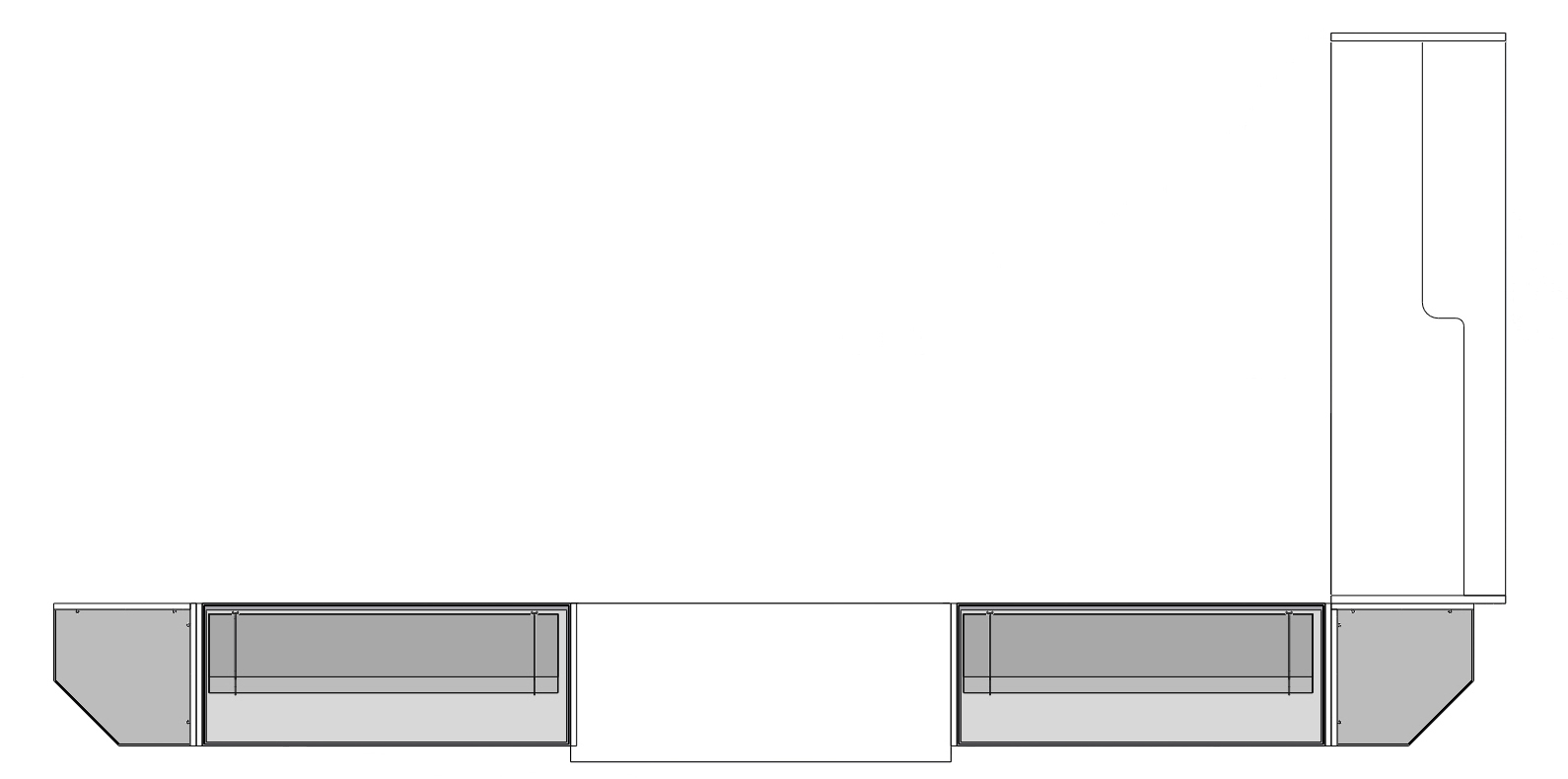 - Includes (2) 4’ Full Vision Counters, (2) Corner Units, (1) 48” Cash Wrap, & (1) 72” Checkout Stand