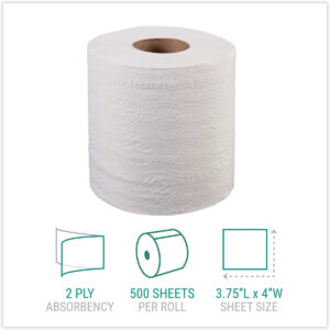 Pacific Blue Basic Bath Tissue, Standard Roll, 2-Ply, 4″ x 4″, 550 Sheets, 80 ct