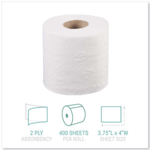 Compact Recycled Bath Tissue, Coreless Roll, 2-Ply, 3.85″ x 4.05″, 1000 Sheets, 36 ct