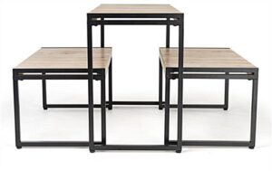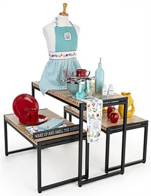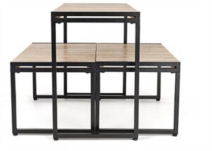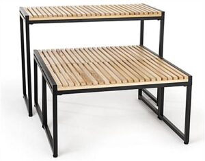 These three-piece natural finish large nesting tables allow you to update your décor and increase your store’s merchandising space. Made from pine wood, each stand has a sturdy powder-coated metal frame, which is ideal for a variety of everyday uses and product displays. These slatted large nesting tables have a modern rustic feel and will blend in seamlessly with your existing store fixtures. These tabletops are great as a tiered set or placed throughout your store to maximize your merchandising opportunities. This style is perfect for clothing displays, home goods setups, and even toy presentations. The large nesting tables with a modern rustic style are sure to complement any retail area.