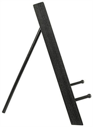 This tabletop easel, called a countertop display, is made for small art canvases, books, paintings, and collectors plates. These artist stands can be used on counters, mantels, exhibit tables, desks, or shelves. Each black wooden tabletop easel has 1-1/4″ pegs for showcasing items up to 1 lb. in weight. These display stands for art work are fully assembled, so consumers just need to remove them from the box and they are ready to use. This tabletop easel folds for easy storage and travel. When collapsed this artist display is only 2-1/4″ thick. Each tabletop easel is also lightweight for portability. Many consumers prefer these small artist stands for events where they do not need to display a huge item. This art holder is a tabletop easel that is great for business use, as well as homes or offices. This painting display is made of solid wood so they are sure to last a long time. There are many tabletop easel units on the market made out acrylic and metal, but nothing compares to the elegant look and high quality of a wooden art display. Most consumers prefer the wood units also do to the folding feature; most other stands are unable to collapse.