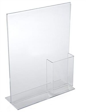 Sign Frame – This sign frame with acrylic brochure display is offered in the bottom/side load “T” style. The graphic display holds an 11″ wide x 14″ high insert. Each unit features an attached brochure holder in the bottom right corner that will fit standard 4″ wide literature. The pocket measures 1.75″ deep, so it can hold a nice stack of publications. The frame is great as a countertop display for any location!
