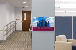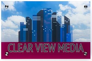 Printed using second surface UV technology on clear plastic, this custom acrylic standoff wall sign features a modern design. The signage system is perfect for interior usage throughout buildings, in entrance ways, and around campuses for wayfinding. Each personalized acrylic standoff wall sign is 11” x 17” in size and can show off graphics and text in any color. Use the clear plastic signage solution to create name plates, building maps, company logos, and more. Our second surface printing process keeps your graphics safe from dings and scratches while in use. Outfit the interior of your building with standoff wall signs for a complete wayfinding solution.