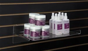 Add this sturdy acrylic shelf to your inventory of Slatwall accessories for supporting heavier objects. There is a brace in the rear of the shelf to support the weight and a raised lip in front the keep objects in place. This shelf will fit all slatwall products that we sell. Dimensions are: 3/16″ thick acrylic. 16″ wide x 10″ deep.