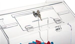 This raffle box has a spinning body that is made from 3/16″ thick acrylic and comes in an attractive octagonal design. The raffle drum has a hinged lid and a 6″ wide slot for inserting the tickets. To ensure the security of your contents, we sell this raffle drum with a built in camlock and two included keys.