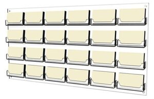 This clear 24-pocket wall business card holder is a great marketing tool for small companies and large institutions alike! Hang the acrylic display in offices, stores, schools, or hospitals. Each pocket mount business card holder simply screws into the wall with included mounting hardware. The durable acrylic construction is sure to coordinate with any décor. Stock the business card holder with your own contact information or allow other vendors to fill it. Items like this mounting unit would be a hit at any trade show or conference.