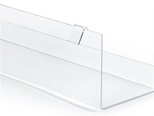 Allow this set of clear acrylic gridwall shelving to highlight your best merchandise within any space. Ideal for displaying artwork, books, jewelry, greeting cards, and more, these L-shaped shelves have a transparent design that offers patrons a full 360-degree view of showcased products. Be at ease knowing this acrylic gridwall shelving with 24.5″ x 6″ display space features a raised ledge that keeps items securely perched in areas of high traffic. Each set of clear j-rack shelves feature two hanging brackets that mount onto standard-sized wire panels without the use of any tools for convenient setup. Thanks to their lightweight design, these highly portable L-shaped trays are perfect for showcasing merchandise at traveling events such as craft fairs, pop-up shops, gallery exhibitions, and trade shows. Customers can easily update and create multiple merchandising configurations by using this gridwall shelving with other acrylic hanging accessories (sold separately). Take the stress out of building your personalized exhibit at your next event with this set of durable j-rack shelves!
