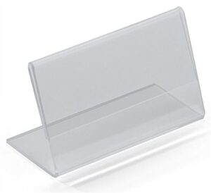 This acrylic frame is also used as a place card holder. Use this small angled sign to hold a decorative name card at a wedding or corporate function. This acrylic frame features a clear design that will not detract from the signage on display. The overall display dimensions are 3.5″w x 2″h. This clear print holder is the ideal acrylic frame to display name cards for a large business event.