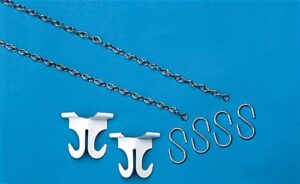 • Unit includes mounting hardware: (2) 10′ lengths of chain, (4) S-hooks and (2) barnacle clips for suspended ceilings