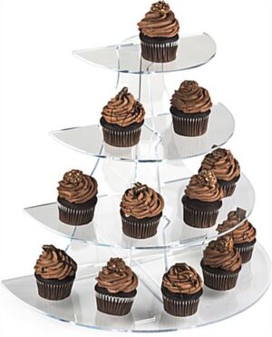 This 4 shelf acrylic stand is a 1/2 round fixture that looks great in display cases to showcase different retail products! Sit this clear riser flush against a wall or leave it on an open counter to create a dynamic and effective presentation of goods for your boutique or bakery. The four cascading shelves that range from 9.25” to 18.5” wide provide plenty of space to organize products on the retail stand. Small or large merchandise can be showcased between the 4.75” clearances of each clear tier. Although the knock down design of the stand ships flat, it is easily and quickly assembled by connecting the crossbars and sliding each wedge into the designated spot. Whether in retail shops or bakeries, this riser looks great anywhere including inside large glass display cases to showcase special items!