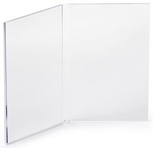 This sign frame holds two 4″ x 6″ prints in one unit. The entire display is constructed with high quality acrylic. Use this bi-fold menu display, sign frame, to advertise specials on restaurant tabletops or bar counters. Dining guests tend to pay attention to the signage located on the table. This table tent is the ideal sign frame to use in a dining facility to help increase product awareness and boost sales. Users can choose to insert two different images side-by-side or up to four different graphics back-to-back. Change this sign frame, also called a menu display, by simply sliding the graphics out through the open sides.