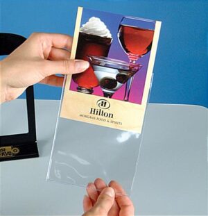 This custom classic arched displayette is great for featuring menus and advertisements on bars or tabletops. Each countertop sign holder is made of black acrylic with a clear vinyl sleeve for holding 4″ x 6″ printed cards. The classic arched displayette includes custom printed graphics on the base, ideal for showcasing store or restaurant logos. The UV digital imprinting can reproduce fine details and/or photos with the ability to match PMS colors. The arched displayette makes it easy to swap out promotional graphics with its convenient slide-in design. These black acrylic table tents offer a refreshing alternative to standard clear plastic models.