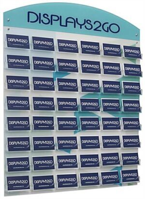 Featuring a personalized back and header, this branded business card rack is sure to gain attention in your shop. Use the included template to create a custom logo and expose your company brand to consumers. Each wall mounting card rack comes with hardware for easy installation. The acrylic material offers a clear view of the custom logo printed on the back panel of the unit with UV technology. Hang the fixture in waiting rooms, shops, and offices to offer customers quick access to your contact information. Use the 48 pockets on this card rack to store a large variety of contact information while making them easily and readily available for consumers.