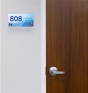 Perfect for corporate, educational, or institutional settings, this custom 6 x 3 acrylic office sign can be fully personalized. Downloadable templates allow you to create graphics or have text printed in full color and high-resolution. This 6 x 3 acrylic office sign for wall mounting is an all-in-one interior signage solution. The plastic design provides a clean look with durable second surface printing that will last for years to come. Each interior signage panel can be mounted to the wall with the included set of two silver standoffs. Ensure consistent, professional branding for name plates or wayfinding symbols with this acrylic office sign.