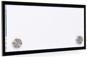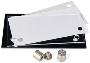 Once your design is printed, separate the frosted film section from the sheet. The custom door sign uses a white cardstock backer to ensure your graphics display against a pure white background. Starting with the black acrylic plate, lay down the cardstock layer, then your print, then the clear acrylic face plate. The entire assembly is locked in place by screwing the standoff caps tight. This custom door sign, also called office signs, features a two-tone effect with the black acrylic plate handsomely framing your design. Showcase company logos, room demarcations, suite numbers, whatever you want because you have the freedom to make your own! This custom door sign is approximately 6″ x 3″ and is intended for small signage applications. We also include (3) sheets of the printable film to ensure you have enough to get the job done. This custom door sign offers the most affordable way to make personalized business signage, buy one today!