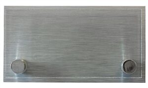 Keep your business directories up to date with this office door sign with brushed formica backing. Print your own number plaque or name plate on the included clear or frosted sheets. Change out your graphics quickly by loosening the aluminum standoffs of this custom door sign. Use this item as a room number plaque, name plate, or for wayfinding purposes. The acrylic panels and aluminum plating are fastened to the wall with two chrome through-grip standoffs. Create a custom and professional wayfinding system for your business with this door sign.