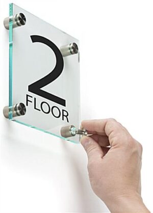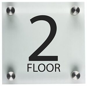 Workshop Series 6 x 6 Wall Sign w/ “Floor 2” Pre-Printed, Acrylic & Standoffs – Clear