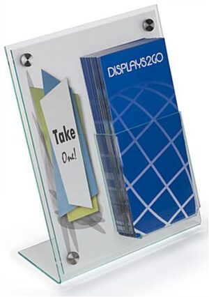Slanted Sign Holder with Brochure Display & Silver Standoffs