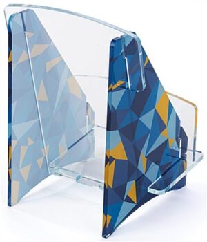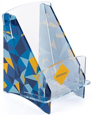Designed for use at trade shows and events, this ship flat custom literature holder has a knock-down design and requires simple assembly. Arriving in 5 pieces, these premium acrylic displays have built-in notches to slide the components together and create a sturdy brochure pocket. Since this countertop custom literature holder takes little effort to assemble and break down, it is convenient to store and transport this unit. What makes these small flyer acrylic displays unique is that each piece can be printed with graphics, maximizing promotional space on a trade show counter or retail check-out. Using premium ink and a UV curing process, this brochure rack features high-resolution artwork that will both capture attention and engage visitors in your booth or store. The slot is 4” wide and nearly 3.5” deep to store a lot of trifolds. Simply set this literature holder in a public space to showcase your promotional material in a professional-looking flyer pocket.
