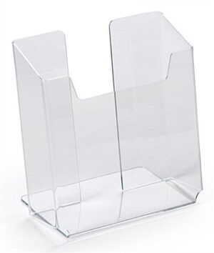 This brochure holder can be customized with artwork of your choosing using the UV printing method. Send us your artwork and we’ll do the rest. The UV printing process lets you print custom graphics in full-color. Each stand has a clear, acrylic construction with a single pocket that’s able to last years of use. The UV printing makes it possible to print right on the front of each brochure holder. The design also makes it possible for the literature to be in full view at all times and has a strong base for placement on a table or countertop.