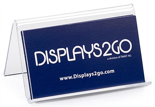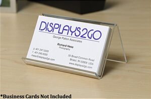 The clear plastic business card holder measure in at only 3-3/4″w x 2-3/4″d. The tabletop easel’s small footprint will allow for extra room for other items on a desk. This desk business card holder comes in a compact size allowing it to be utilized on cluttered desk or tight spots. The tabletop easel comes in packs of (50) units due to an incredibly low price point. The desk business card holder can be bought in bulk to save even more money. The tabletop easel can be used in doctors, sales, construction, dean offices and many other locations. The desk business card holder that is cheap is also an effective tool for use at tradeshows and corporate conventions. These tabletop easels have many applicable uses across many industries.