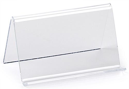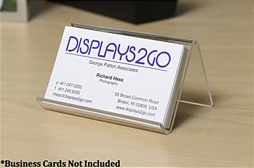 The clear plastic business card holder can hold (30) corporate calling cards comfortably. The tabletop easel will not need to be refilled frequently. Each desk business card holder comes in a clear acrylic plastic. The simple design of this tabletop display doesn’t detract from the corporate cards being held on the easel. The simplicity of each desk business card holder that is acrylic, allows it to be used in almost any setting. Each counter top display is made from a 0.087 thick acrylic plastic. This desk business card holder helps to ensure years of use. These tabletop easels would be great for any office.