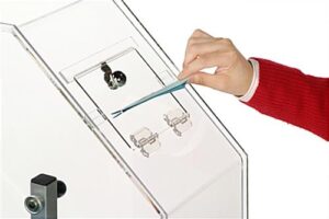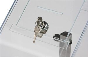 These raffle barrels have a contemporary eye-caching design. We manufacture these raffle drums with a 29-1/2″ diameter transparent acrylic drum attached to floor stand with a 23″w x 18″d heavy-duty base. The base is black powder coated MDF wood and has 4 locking casters allowing convenient mobility. These raffle drums are fabricated from 3/16″ thick clear acrylic. Ticket slot and tamper resistant cam-lock are built into each hinged lid, allowing individual ticket to be inserted without opening the door. These raffle ticket drums are balanced for a smooth constant action that ensures a random mixing of ballots, entries, contest forms and lottery tickets. In addition, this raffle drum features a “pin lock” to lock the drum stationary when you are collecting tickets and ballots or when you are not spinning the drum.