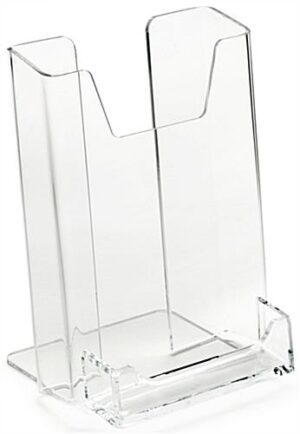 This 4″ acrylic customized brochure holder comes with full color digital printing for featuring company logos. We use a UV digital printing process to create high quality graphics. Our acrylic customized brochure holder also includes a business card pocket for contact info as well. Each countertop literature rack is made of clear plastic to feature promotional literature with full visibility. The customized brochure holder has a sturdy yet lightweight design that’s great for placement on desks, tables, or counters.