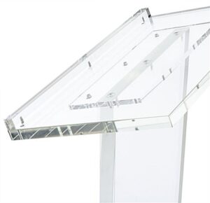 This acrylic lectern podium is designed to bring attention to the speaker during oral presentations! Each clear church pulpit is a knockdown display for a more cost effective shipping method. The custom podium stand is easy to assemble with hardware and tools provided. Each clear church pulpit has a large reading surface for holding ample presentation materials and notes while in use. The podium is 45.5” tall providing a standard height for most speakers. Each custom stand comes with cleaning solution & cloth for removing dust and dirt from the display!
