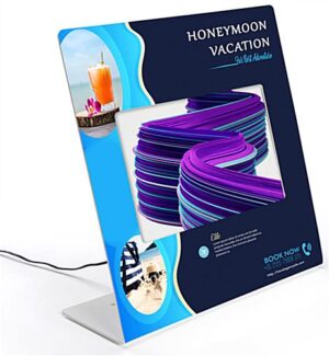 Entice customers to make that extra purchase with this LCD digital pop countertop display. Outfitted with a 1280 x 800 high definition advertising screen, each sign can play back photo, video, and audio files. With its compact design, the acrylic digital pop countertop display is perfect for promotions at retail checkout areas. Plug a USB or SD card into one of the available ports to begin playing back engaging content with the press of a button. Customize the acrylic border around the advertising screen with your own custom graphic design to make the sign stand out. Not only can multimedia be updated on the 10″ screen, but the custom printed PSA acrylic housing can be swapped out for a new panel (sold separately) – making this perfect for seasonal or special promotions. Use this digital countertop display in retail, travel agencies, or event environments to showcase engaging content that catches the eye.