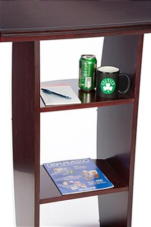 Made of sturdy plywood, the wooden podium has a mahogany finish veneer as well as a curved acrylic front panel that attaches to the body with six silver standoffs.