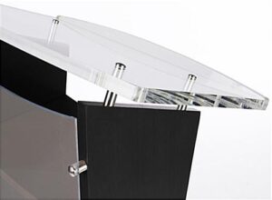 This frosted acrylic public speaking stand can be used at any conference hall, hotel, trade show or university. The front panel gives the podium a different type of sophistication than a clear unit. The sleek public speaking stand can make any presentation more professional with its unique H-shape design with soft curved back. The fabricated wood veneer that is used on the podium comes with a black finish making it the perfect accent to the front panel. So if you want to make a good first impression on any new audience, then this is the speaking stand that can bring you sophistication and functionality.