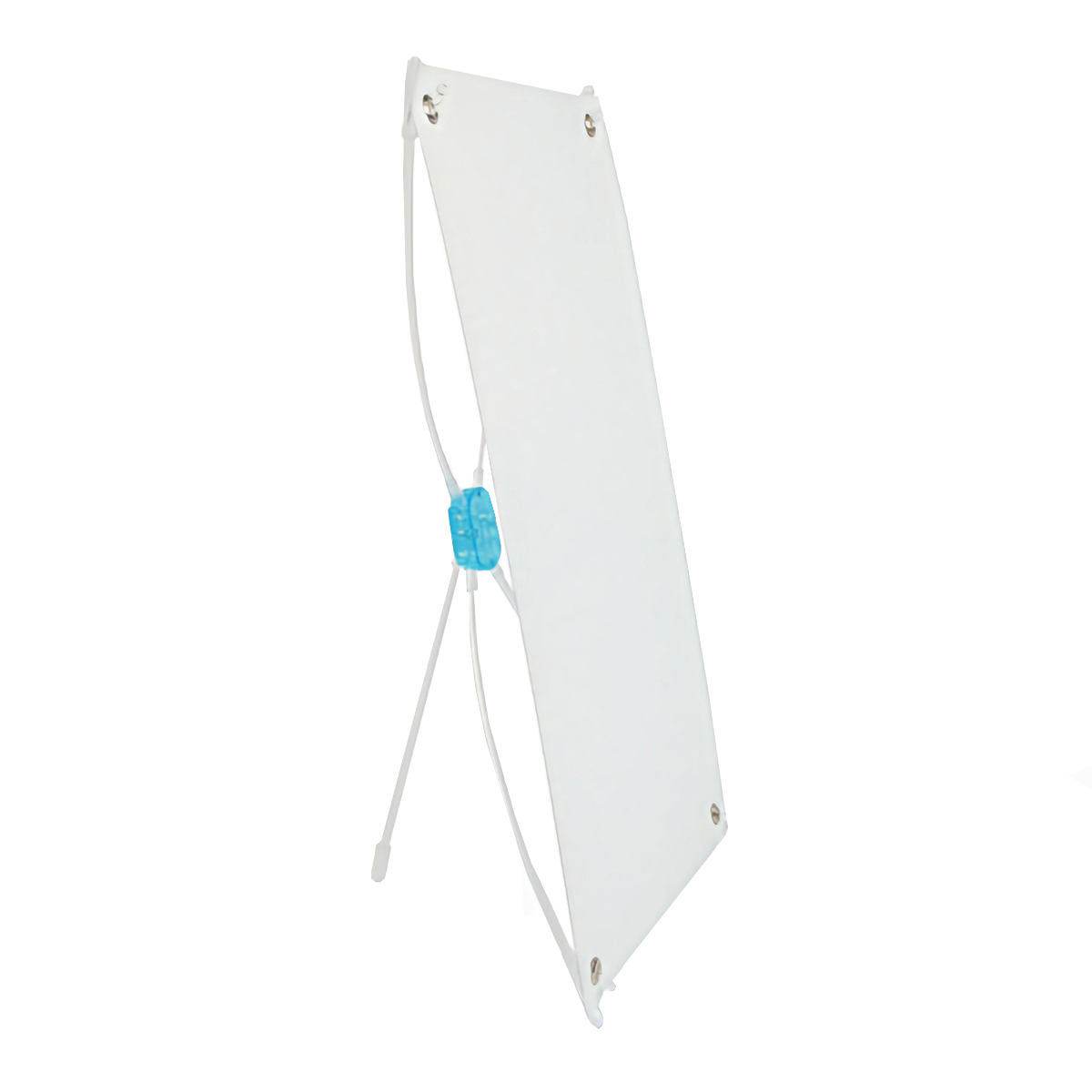 The x-frame banner stand is perfect to pop on a table top with effortless setup for any personal event, party, or trade show. The user-friendly tripod base is coupled with a high-quality printed stay-flat vinyl banner that can include your company name and logo as well as event details like dates and times. This cost-effective marketing solution is the ideal size for a table or flat surface. The hardware of the tabletop x-frame compresses to form a compact display for easy storage and travel. This space-saving display will allow you to include multiple x-frame tabletop banners in your event space without running the risk of presenting a cluttered exhibit. The tabletop x-frame banner stand is 10″ wide and 17.5″ high and includes custom printed graphics on stay-flat vinyl.