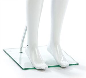 This glossy child mannequin is the ideal store fixture for displaying youth clothing in department stores and many other retail locations. The white abstract body form showcases fashion accessories and apparel for both male & female kids (boys ages 6-11 and girls ages 7-12). Each unisex child mannequin includes a weighted glass base with calf rod ensuring stability when in use. The body of each abstract clothing form features removable arms for easily interchanging youth clothes and accessories. Each child mannequin is made from eco-friendly polypropylene which makes the unit extremely lightweight at only 10lbs and allows the display to be transported easily from location to location. Buy the versatile store fixture shown here and show off your company’s adolescent male & female clothing collection!